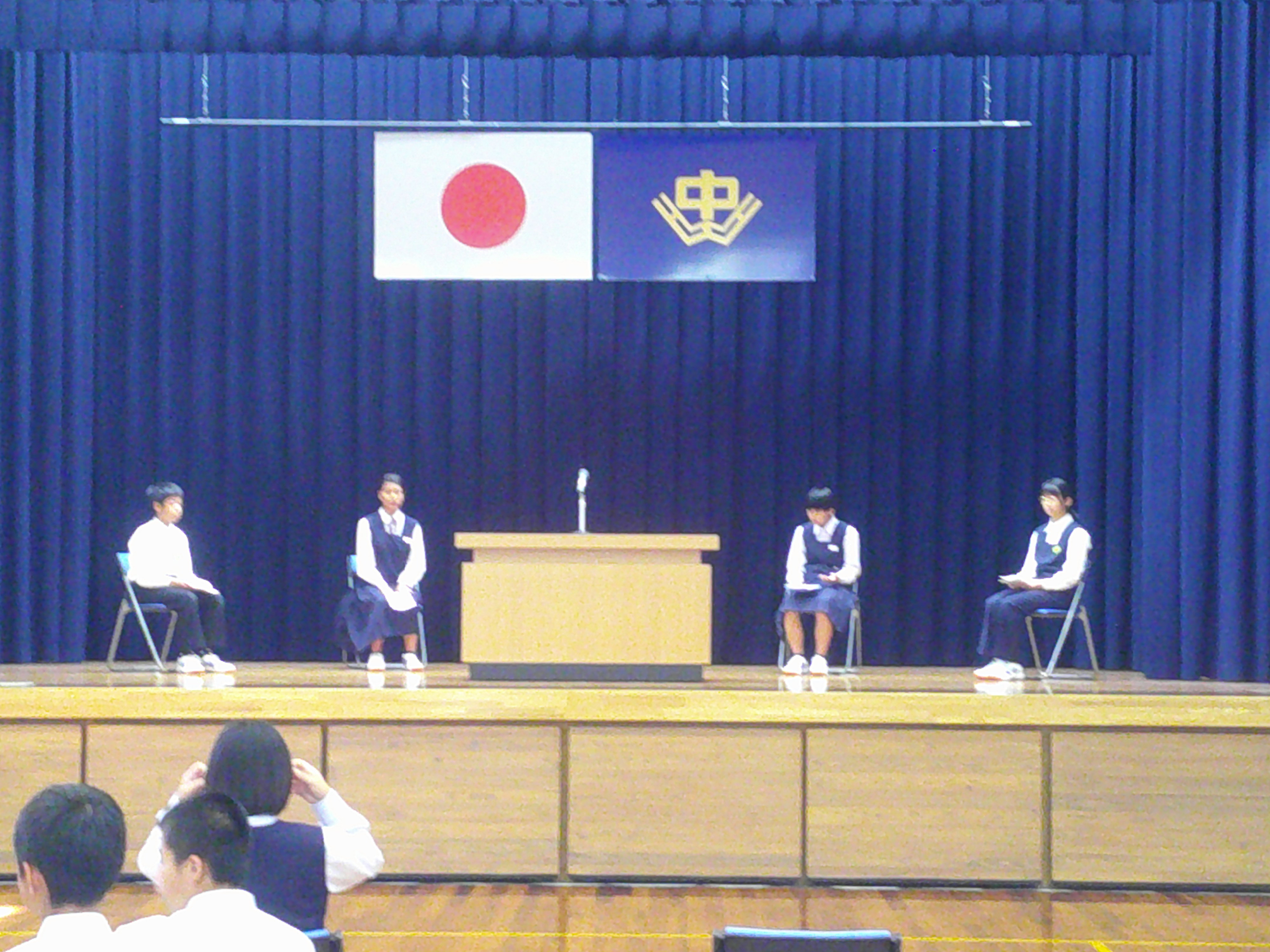 4名の立候補者が公約などを中心に演説を行いました。各立候補者に対する「質問タイム」では、他の生徒からたくさんの質問がありました。メリハリのある雰囲気のもと、演説も投票もスムーズに行われました。個々の生徒の成長が感じられる、立派な生徒会選挙でした。